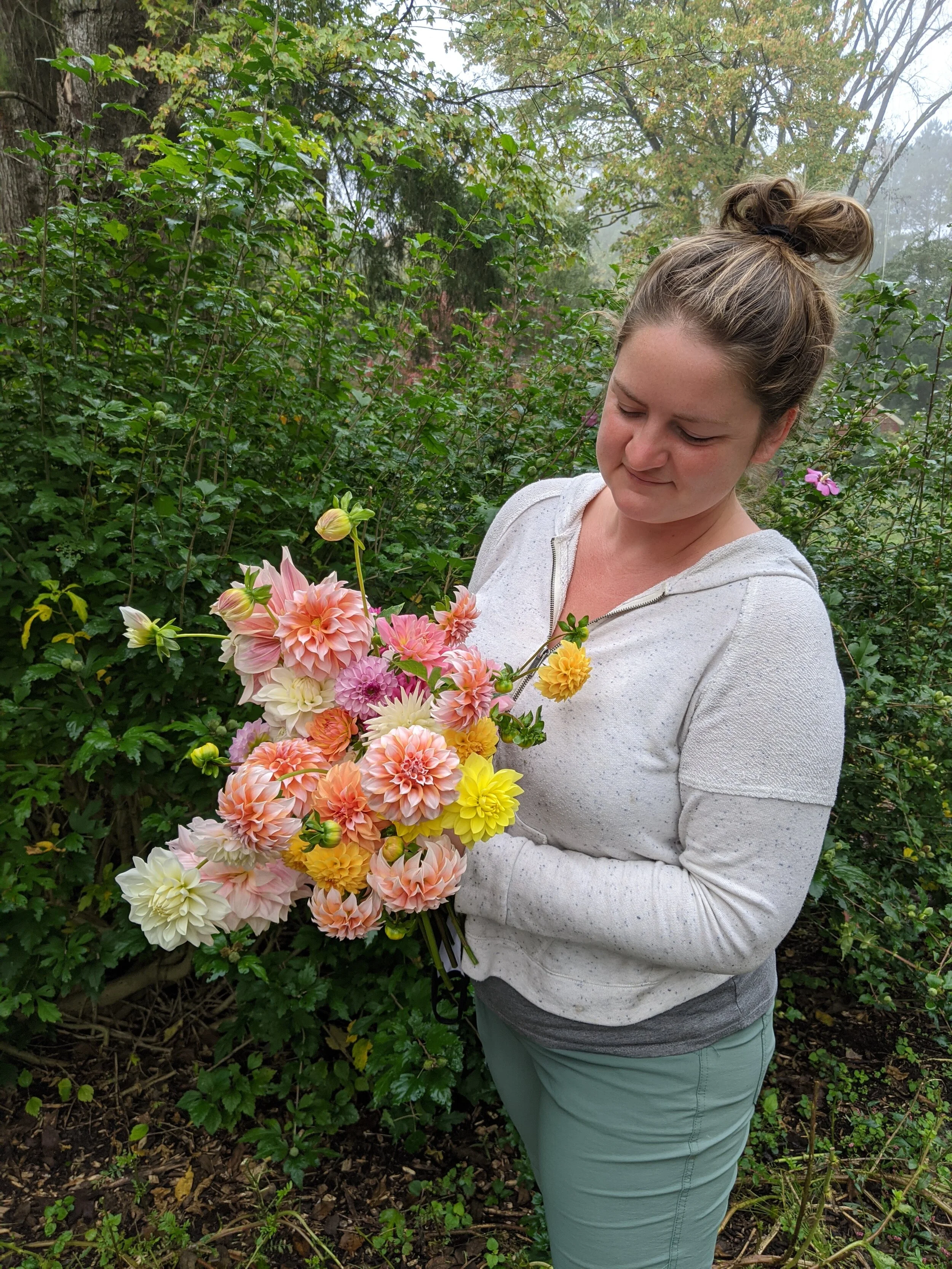 Established in 2015 as Hummingbird Gardens, my aim then was to use my suburban front yard to its fullest potential and grow herbs for restaurants. I started an herb CSA specifically for restaurants and couldn’t believe when they actually signed up. At the time I also worked as the Garden Education Coordinator for the Weinstein JCC and taught children from ages two through middle school about growing tasty veggies and eating them, respecting and loving our pollinator friends, and using the garden space to connect to our bodies and minds. As someone who used to see flowers as frivolous (if you can’t eat them all what’s the point?), I started to become more interested in them when I saw how they helped our education garden as a whole. At the same time, one of my restaurant clients asked if I could grow flowers for their tables. That became an offering and before I knew it I was growing more flowers than I was herbs. I was reading everything I could get my hands on about growing cut flowers. I was hooked in a big way. I used the herbs from my garden that I kept growing to start producing herb infused culinary salts and that steadily became a large part of my business. Today, I’ve said goodbye to the herb salts in favor of more time with the flowers and my 2 year old son, Silas, who keeps me extremely busy and laughing.