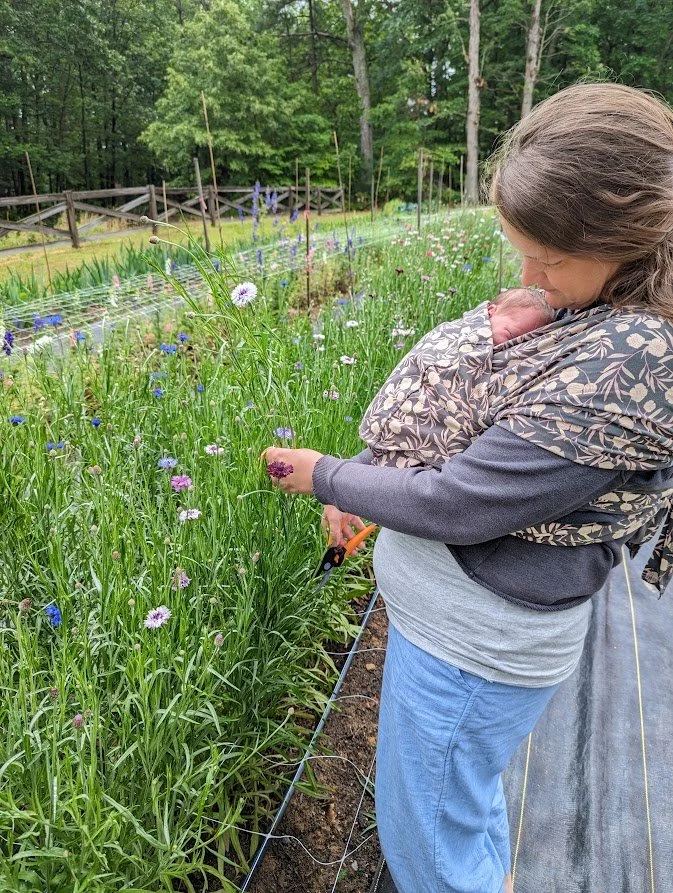 In early 2018, I attended a cut flower conference in Danville held by Virginia State University and happened to start chatting with a nice man named Don from Midlothian. He told me about his land and his interests and I asked if I could come visit sometime. That season, I started growing flowers at Bright Acres Dayliles. We expanded to include growing in a big high tunnel (a new thing for me that I loved but also felt intimidated by!) and a bunch of new beds. I was so fortunate to be part of this space while I was there. Last year, we found our dream home in Beaverdam, Virginia (part way between Ashland and Doswell) and are now working to re-establish there. All while having another baby! Life is super full but I’m really grateful to have a field of my own that is equal parts beauty and chaos! :)